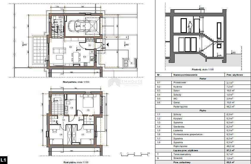 Piętro łącznie 49,0 m2